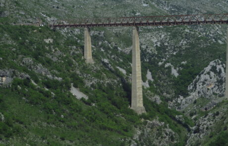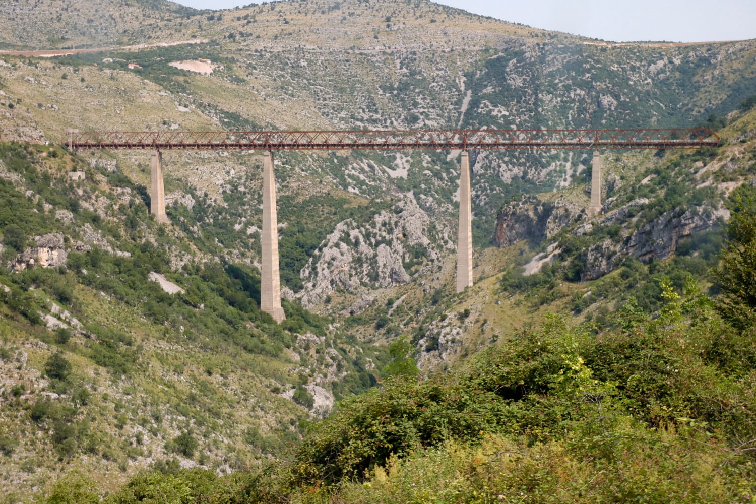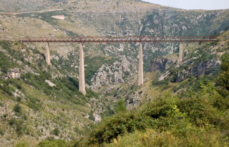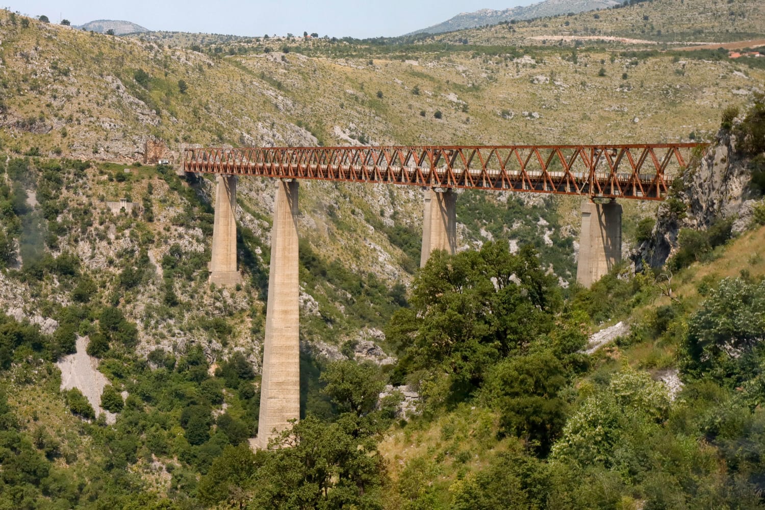 Während der Bahnfahrt passiert der Zug die höchste Eisenbahnbrücke Europas (201m), die Brücke über die Mala Rijeka, und gleich danach bietet sich den Bahnreisenden, aus der „Vogelperspektive“ in die fast 1000 m tiefe Moraca-Schlucht, der atemberaubende Panoramablick an.